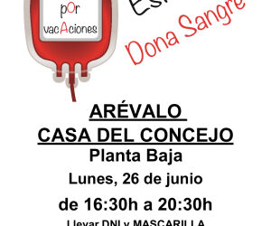 Este verano dona sangre Arévalo casa del concejo planta baja Lunes, 26 de junio de 16:30 horas a 20:30 horas... Leer más → Campaña de donación de sangre en Arévalo (26 de Junio)