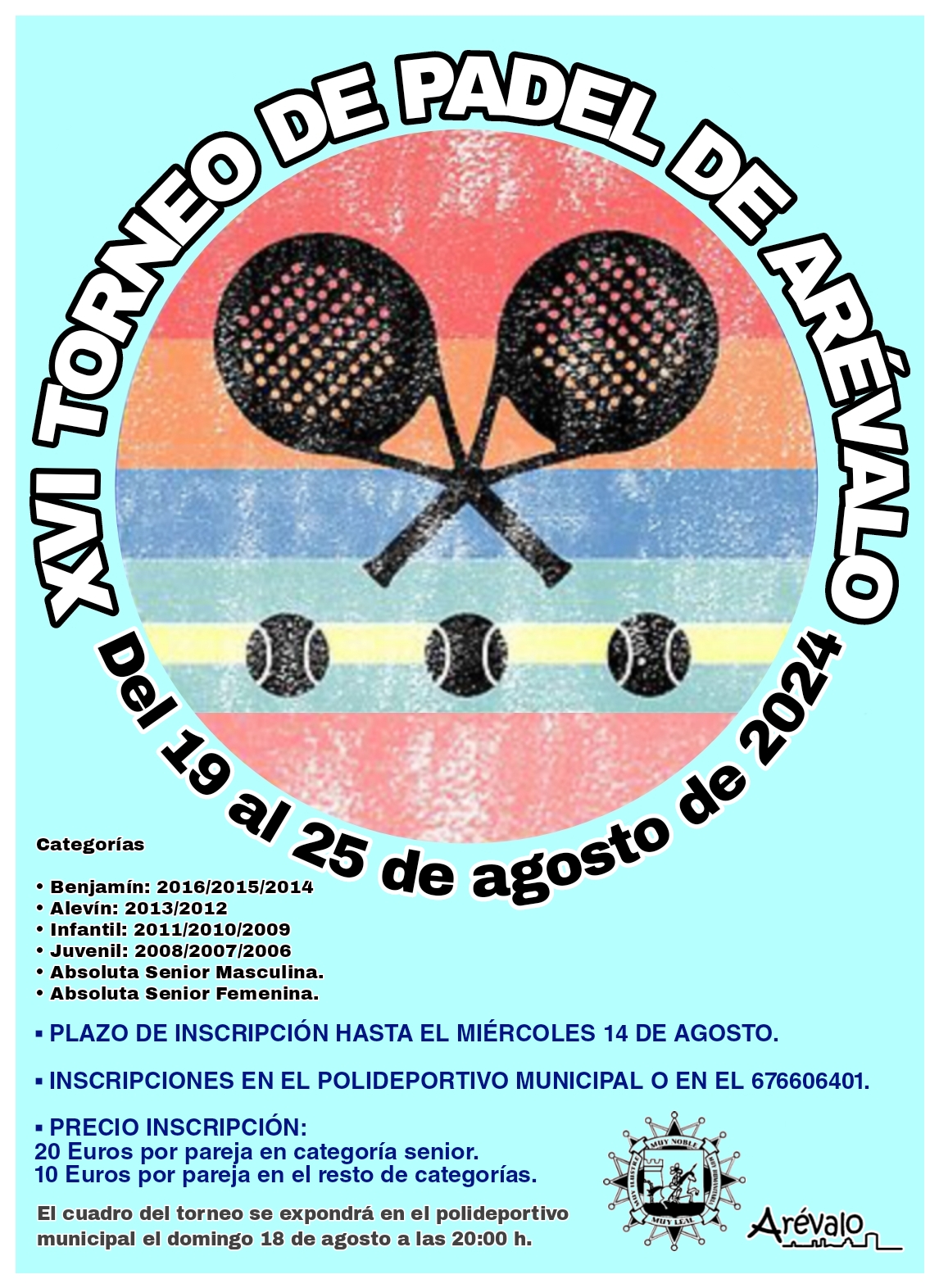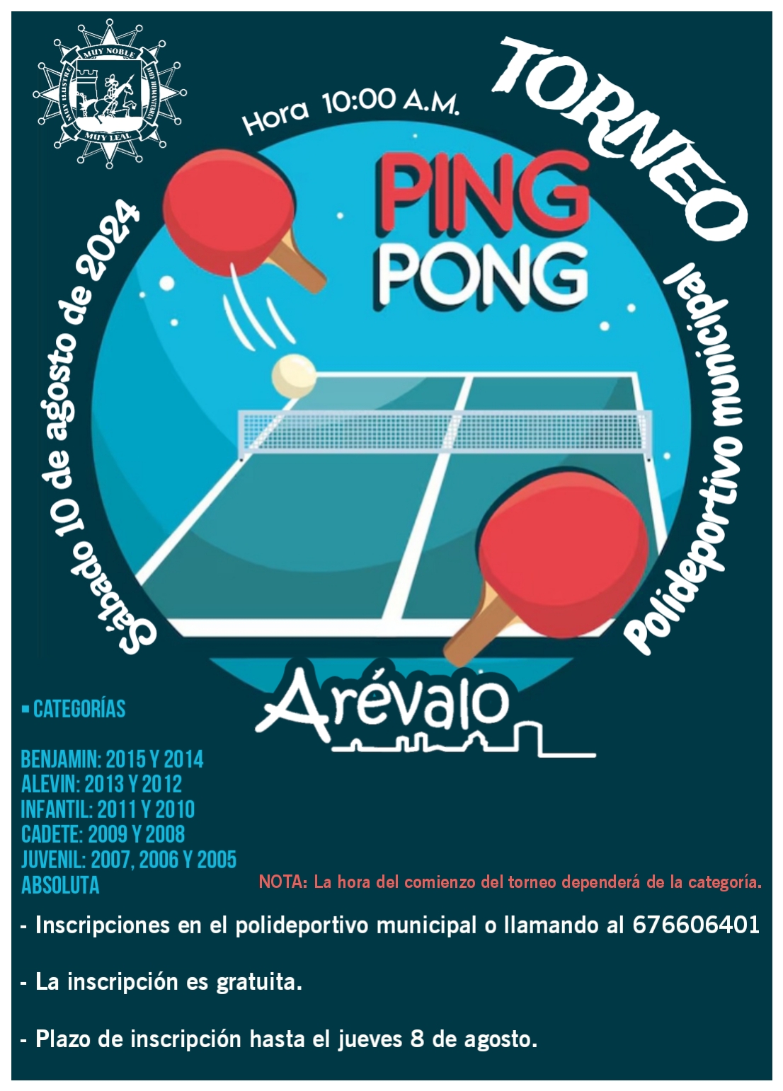 El plazo de inscripción es hasta el miércoles 14 de agosto Inscripciones en el polideportivo municipal o en el 676606401 |