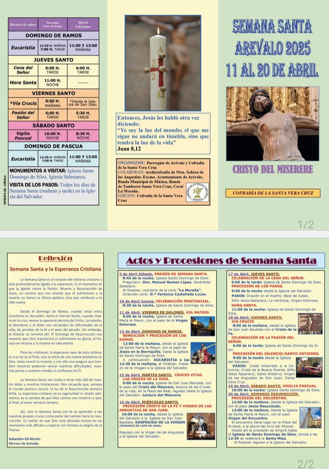 Desde la Iglesia del Salvador a la Iglesia de San Juan Bautista Despedida de la Virgen Romance de Lope de Vega Regreso con la Virgen de las Angustias a la Iglesia del Salvador |
