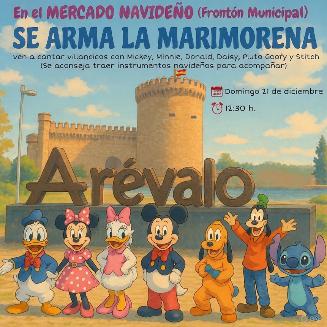 En la Plaza del Arrabal, SE ARMA LA MARIMORENA.Ven a cantar villancicos con Mickey, Minnie, Donald, Daisy, Pluto y Stitch.(Se aconseja traer instrumentos para acompañar).