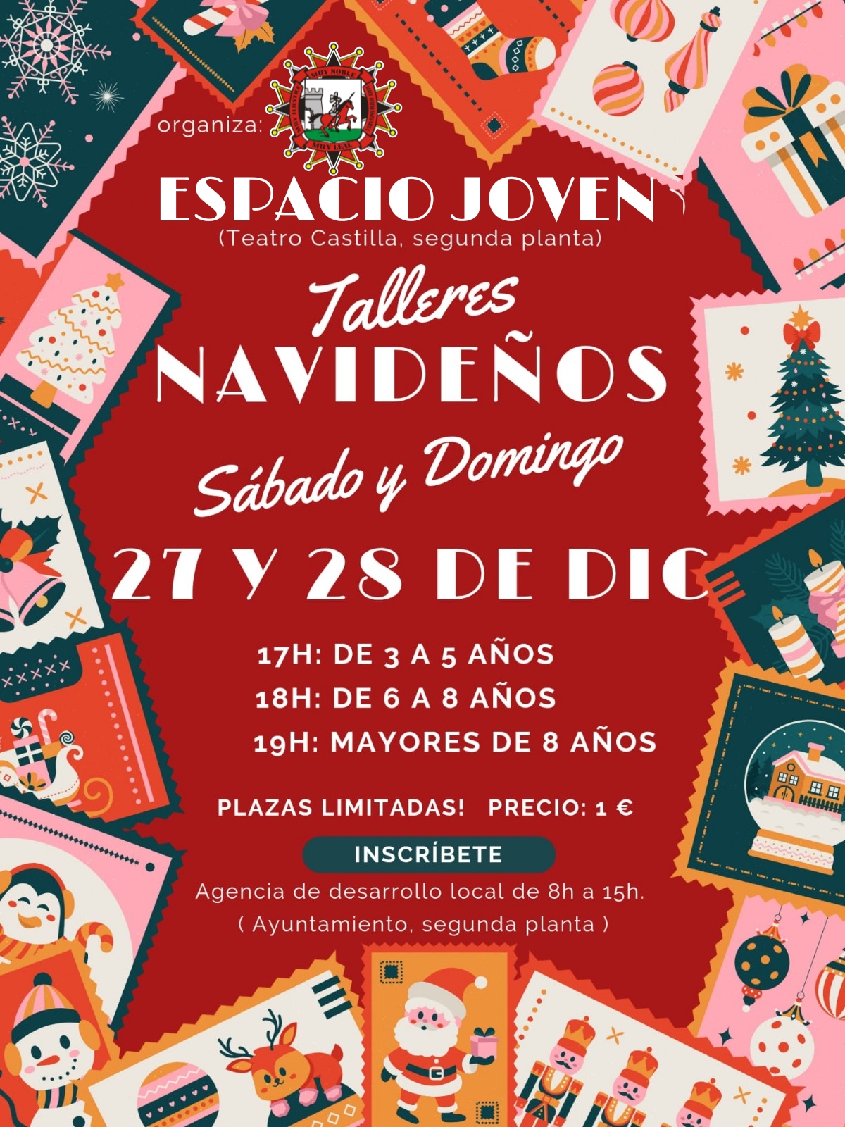 Horarios: - 17h: de 3 a 5 años - 18h: de 6 a 8 años - 19h: mayores de 8 años Precio: solo 1€ ⚠️ ¡Plazas limitadas! Inscripciones en la Agencia de Desarrollo Local (Ayuntamiento, segunda planta) de 8h a 15h. ¡No os quedéis sin plaza! Venid a crear, reír y vivir la magia de […]