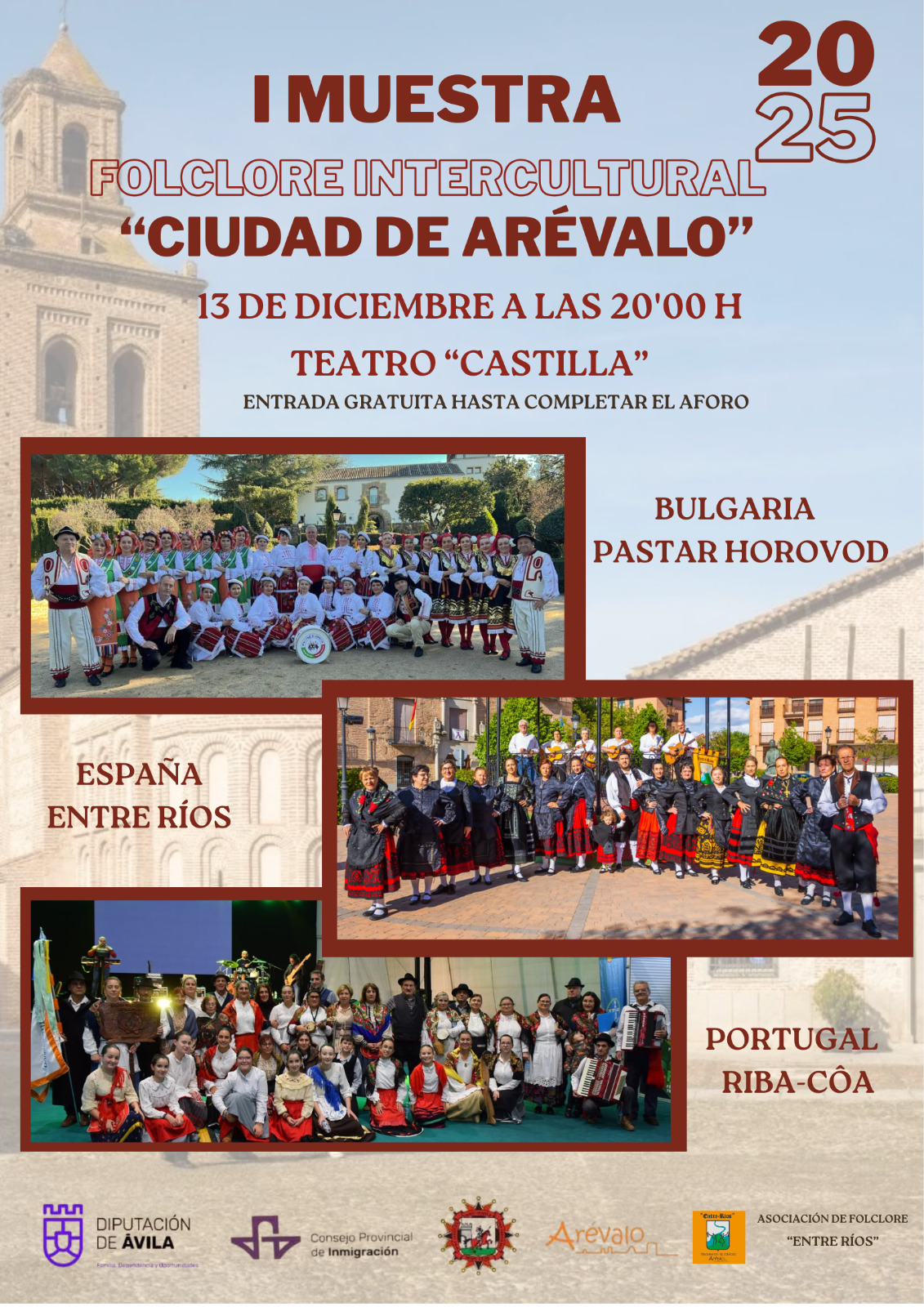 Arévalo se llenará de música, color y tradiciones del mundo con la I Muestra de Folclore Intercultural “Ciudad de Arévalo” ✨ El sábado 13 de diciembre A las 20:00 h En el Teatro Castilla Tres países, un escenario: Bulgaria Portugal España Una noche mágica llena de bailes espectaculares, trajes típicos impresionantes y mucha convivencia entre […] |