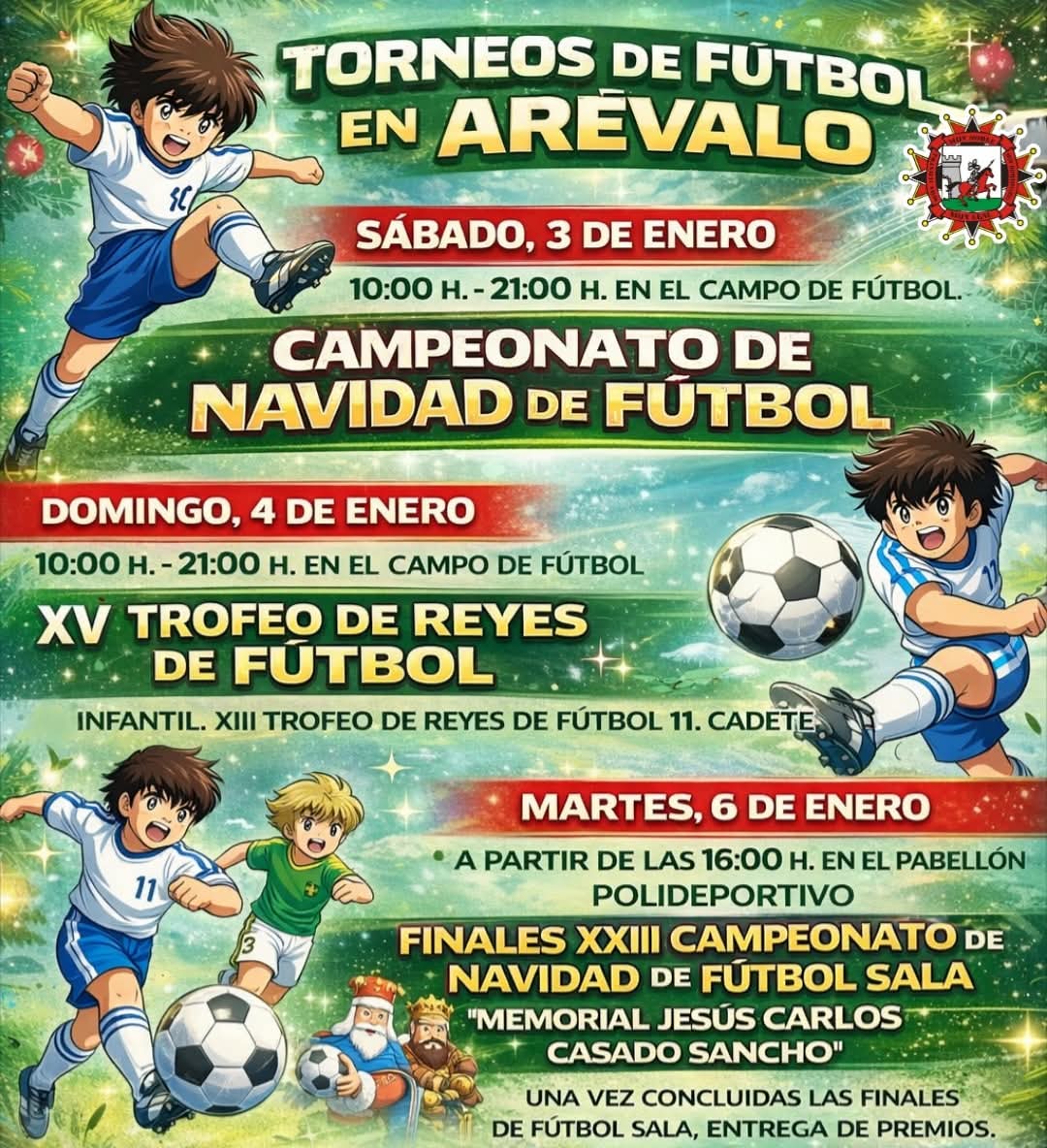 XXII CAMPEONATO DE NAVIDAD FÚTBOL SALA “Memorial Jesús Carlos Casado Sancho”en el Pabellón Polideportivo.(Del 22/12/25 al 06/01/26) |