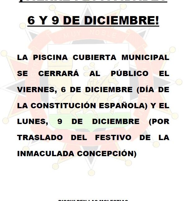 Horario de apertura instalaciones deportivas festividades del 6 y 9 de diciembre